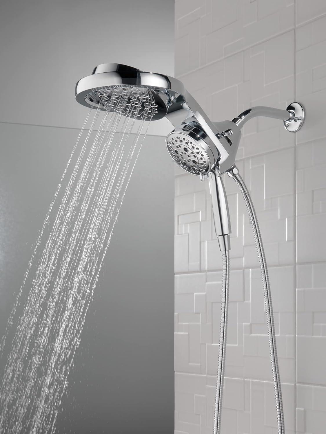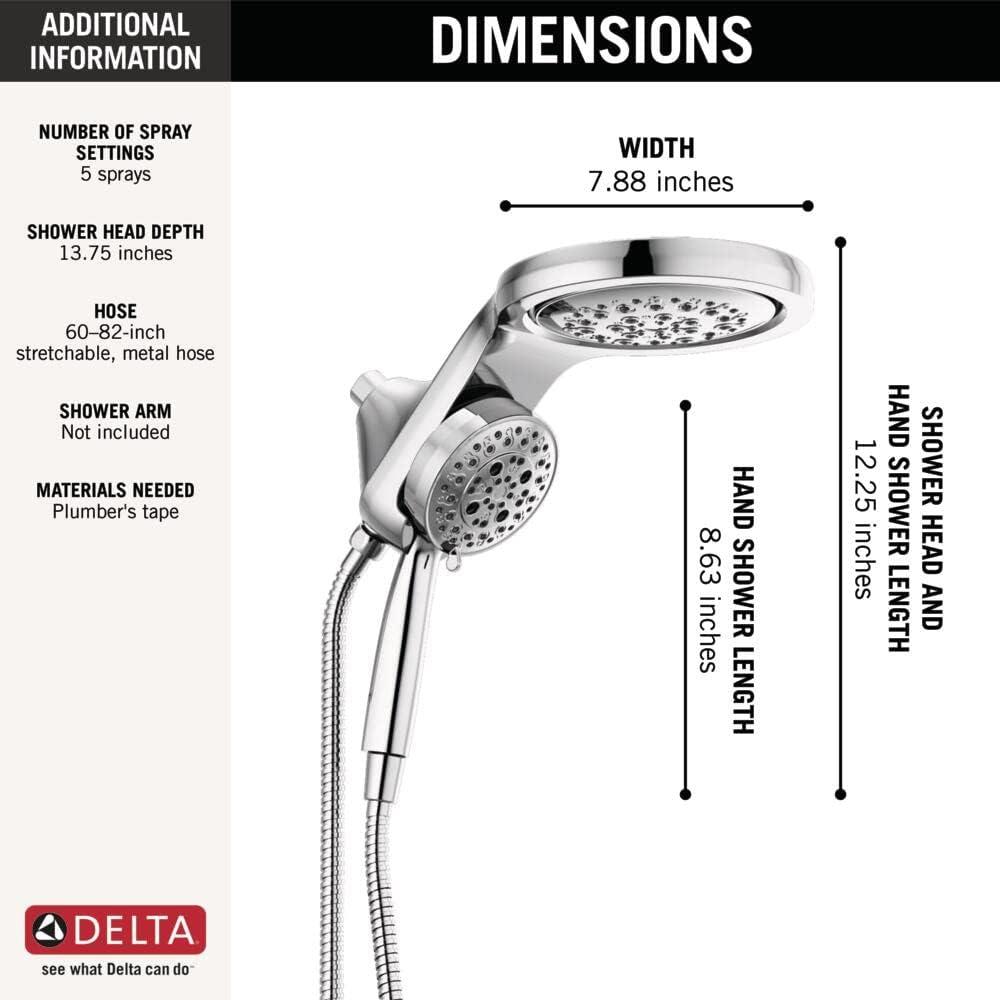 Delta 5-Setting HydroRain 2-in-1 Dual Shower Head, Polished Nickel High Pressure Shower Head with Handheld Spray, 2.5 GPM Flow Rate, Lumicoat Polished Nickel 58680-PN-PR25(Chrome)