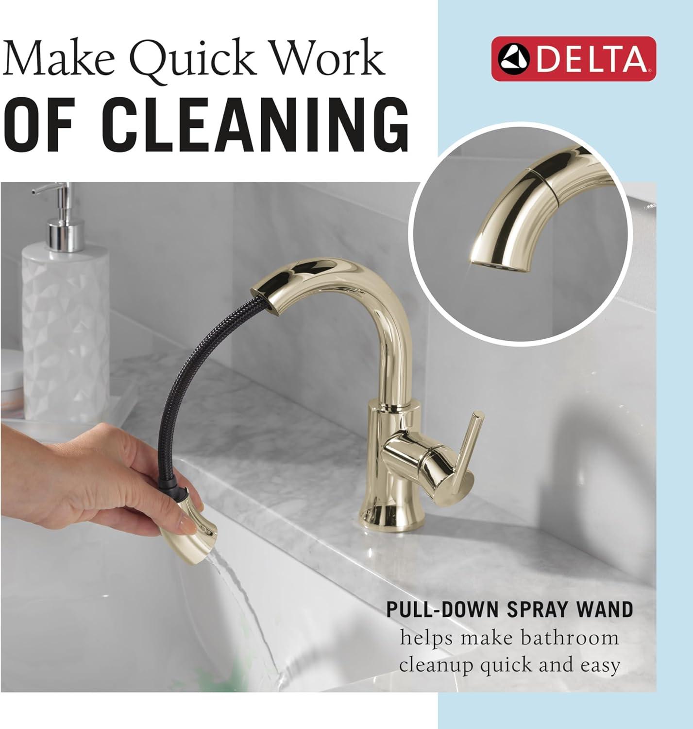 PULL DOWN SPRAYER: The Trinsic Pull Down Bathroom Faucet makes quick work of cleaning toothpaste, dirt and small debris from your bathroom sink with the flexible pull-down spray wand
