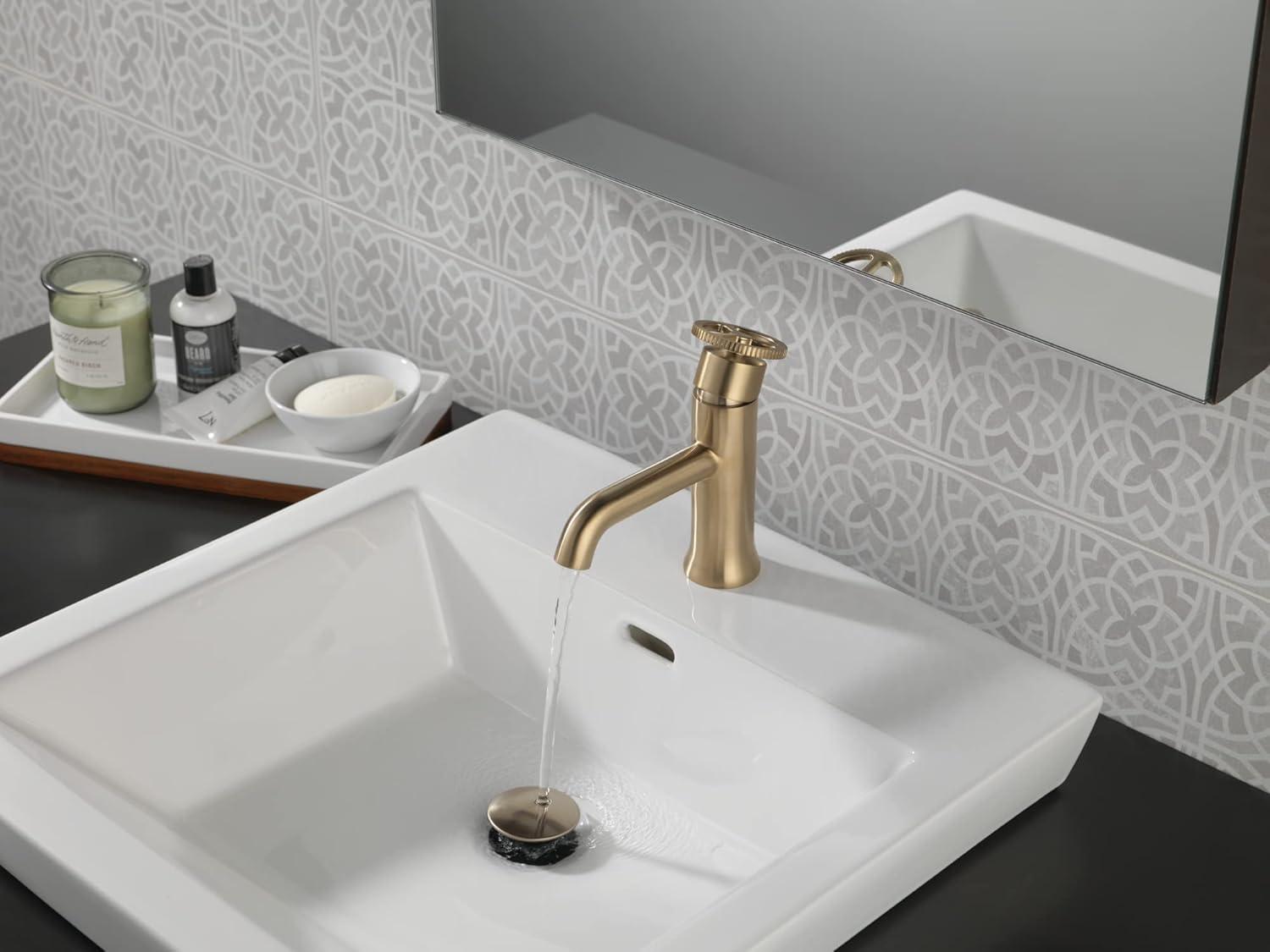 Delta Trinsic Touchless 1-Hole Bathroom Faucet Touch On Technology, Brushed Nickel Trinsic Single Hole Bathroom Sink Faucet with Wheel Handle, Metal Push-Pop Drain Assembly, Stainless 558T-SSMPU-DST(Champagne Bronze)