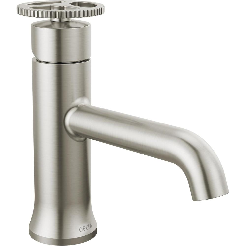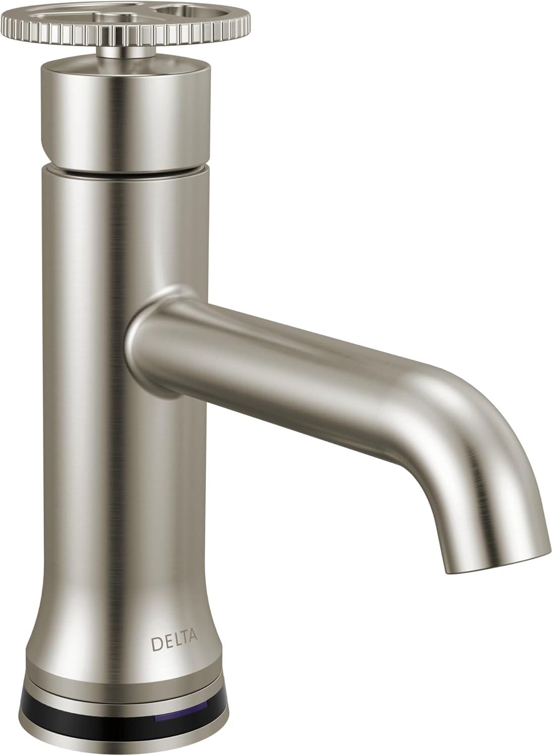 Delta Trinsic Touchless 1-Hole Bathroom Faucet Touch On Technology, Brushed Nickel Trinsic Single Hole Bathroom Sink Faucet with Wheel Handle, Metal Push-Pop Drain Assembly, Stainless 558T-SSMPU-DST(Stainless)